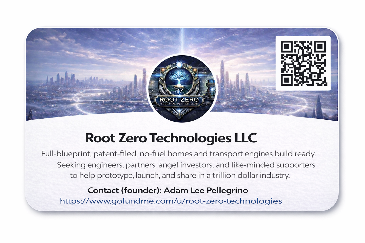 Root Zero Technologies invites engineers, prototypers, and hands-on builders to help launch the world’s first post-scarcity energy engine. Full blueprints are ready. You bring tools, skills, and spirit.